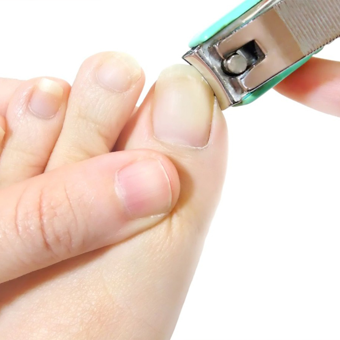 Gunting kuku kaki lurus mengikuti bentuk normal jari kaki, tidak terlalu pendek atau terlalu dengan kulit.